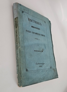 ![]() «Вестник Императорского Русского географического общества за 1853 г. Ч. 8. Книжка IV», Санктпетербург, В тип. Эдуарда Праца, 1853 г. [4], 19-28, 35-88, 20, 9-42, 65-158, 90 -176, 33-72, [4] c.; 1 л. таб.; ил. В издательской обложке. Частично неразрезанный экз. Формат: 25,5x16 см. Всего вышло 30 частей, в каждом году 3 части (6 книжек); книжки 1-6, нумерация книжек внутри года единая, от первой до шестой. Первые 7 лет каждая часть состояла из 2-х книжек. Начиная с 1858 года, в каждой части 4 книжки, а в 1860 году - 12 книжек. Издание редактировал В. А. Милютин. Издание — важный источник по истории отечественной науки середины XIX века. В нём отражена деятельность Императорского Русского географического общества, одной из ведущих научных организаций Российской империи. Журнал служил площадкой для публикации результатов исследований, обмена знаниями и продвижения географических и смежных наук в России. В выпуске представлены разнообразные ... далее... Цена: 12.000 руб. Фото |